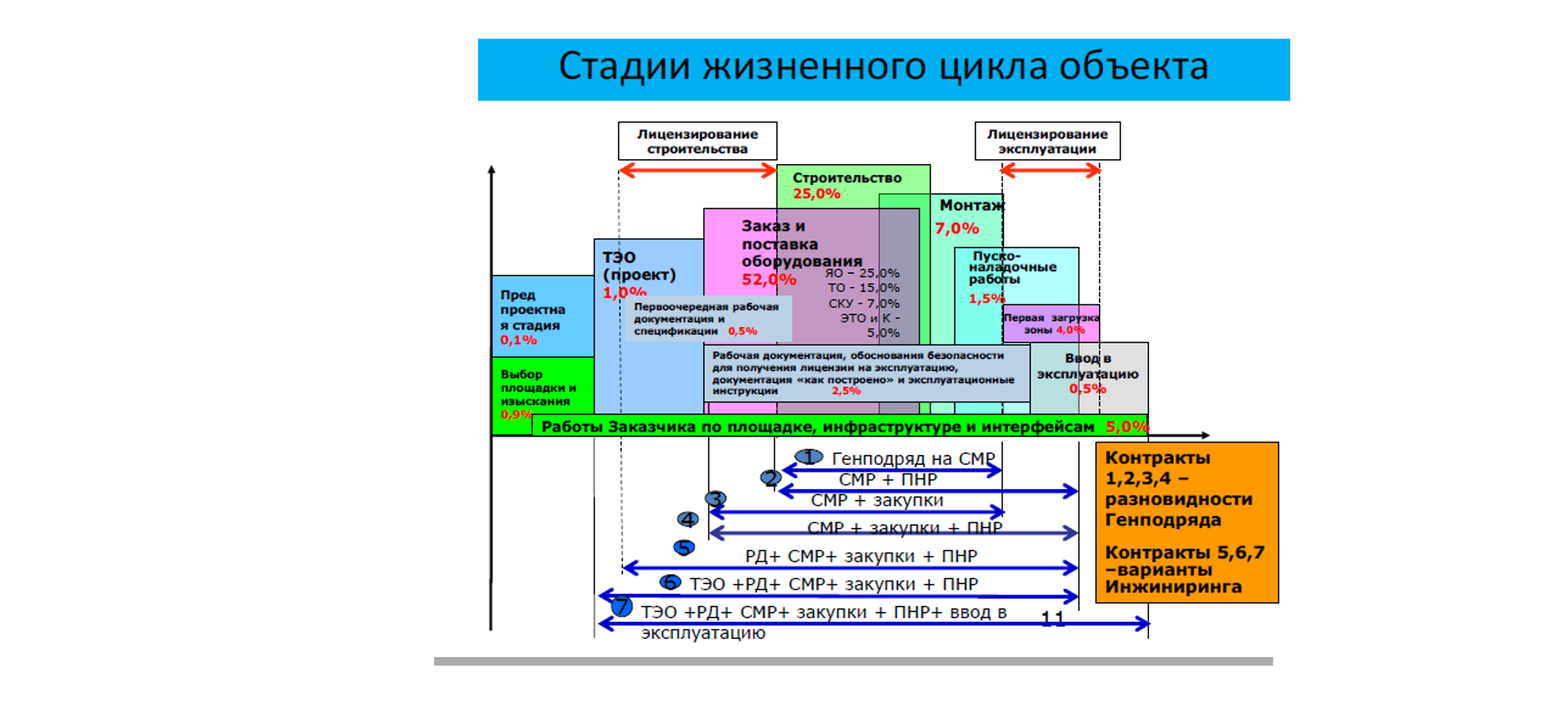 Рис. 1. Жизненный цикл строительных работ: сегментация и последовательность процессов